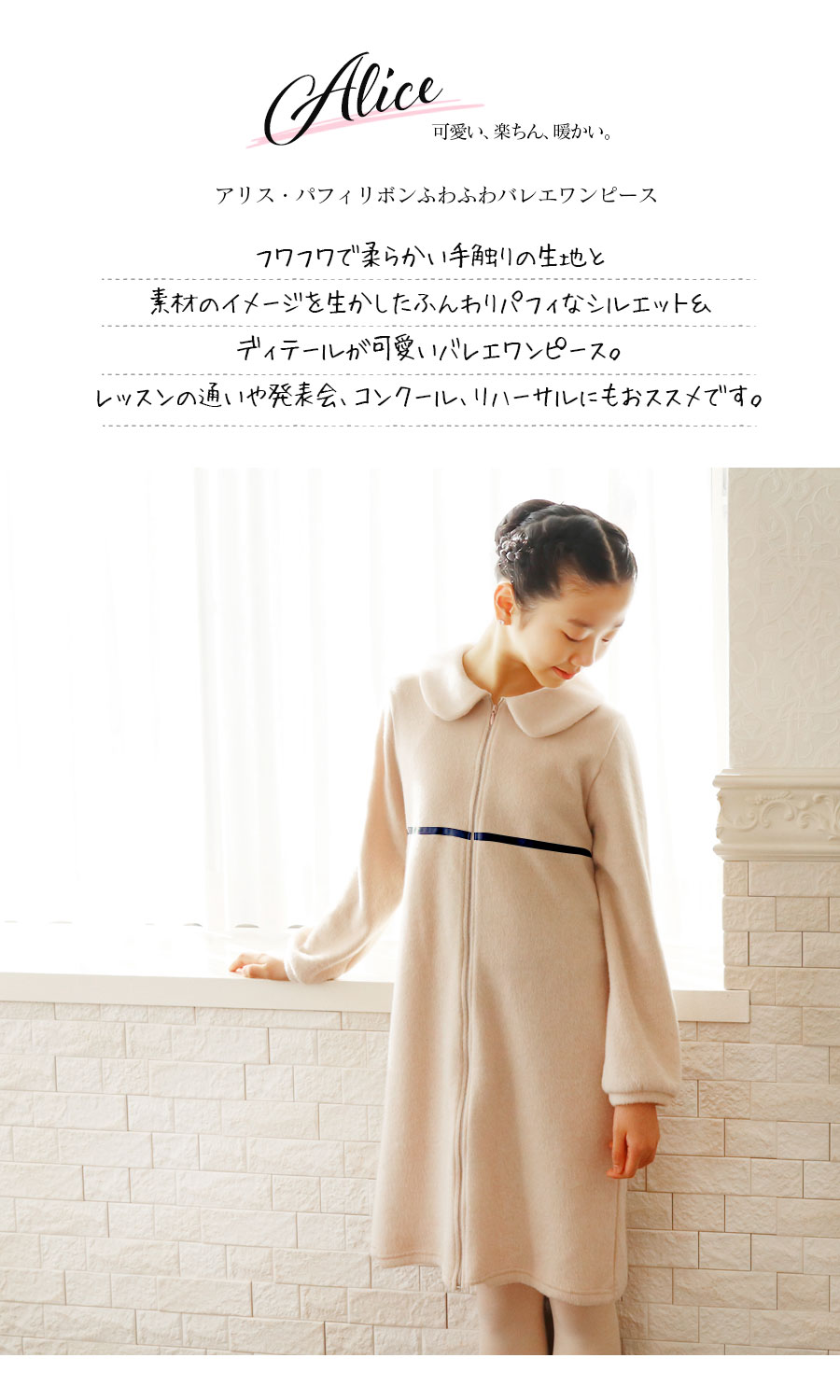 レオタード&タイツの上にさっと羽織って、きちんと可愛いバレエワンピース。