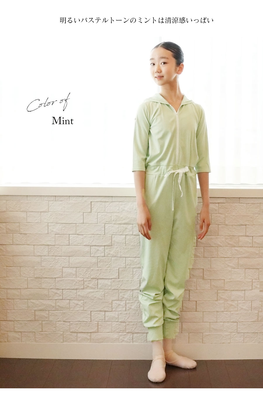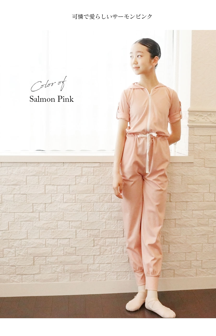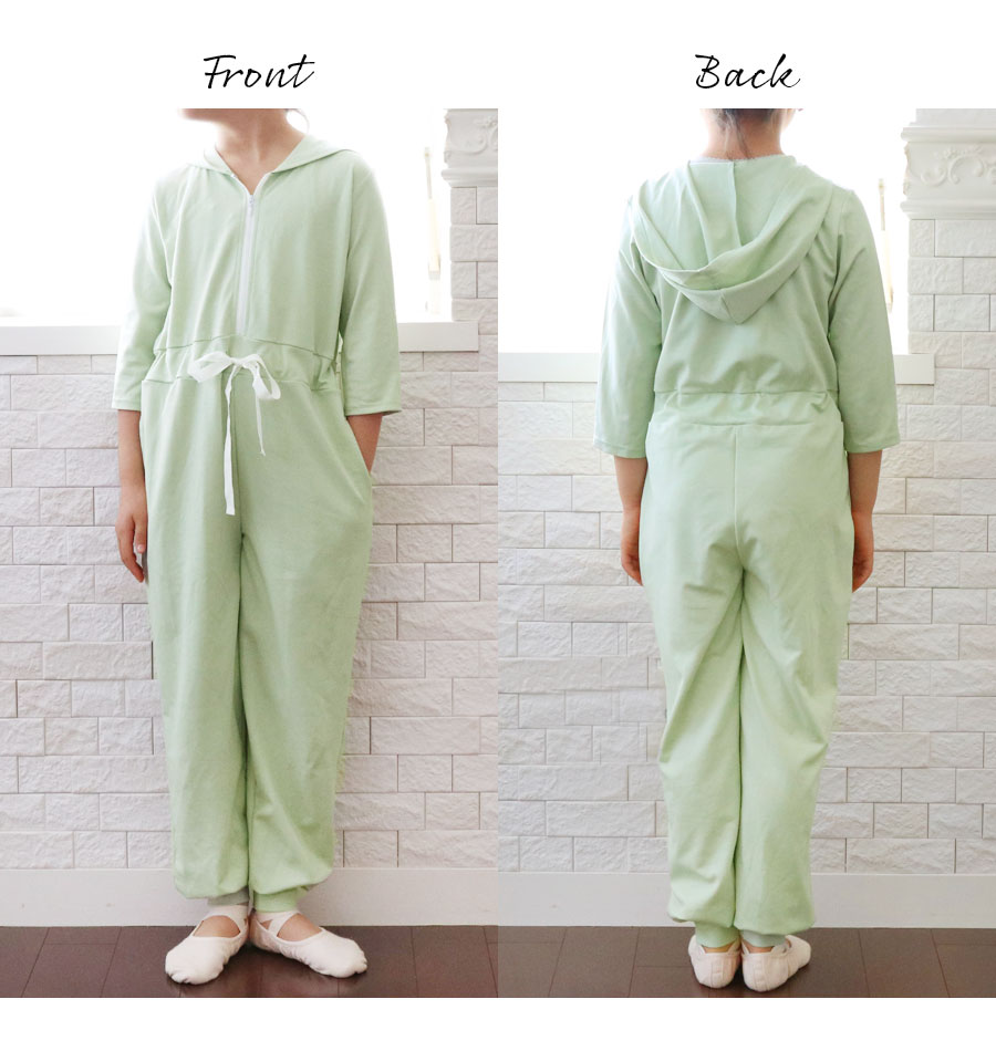 ⇒袖丈はバレエキッズの意見を生かして、七分袖〜半袖に変えられる2WAY袖にしました!また上半身を脱いで、ウエストで調整すればパンツのようにも着られて便利です。