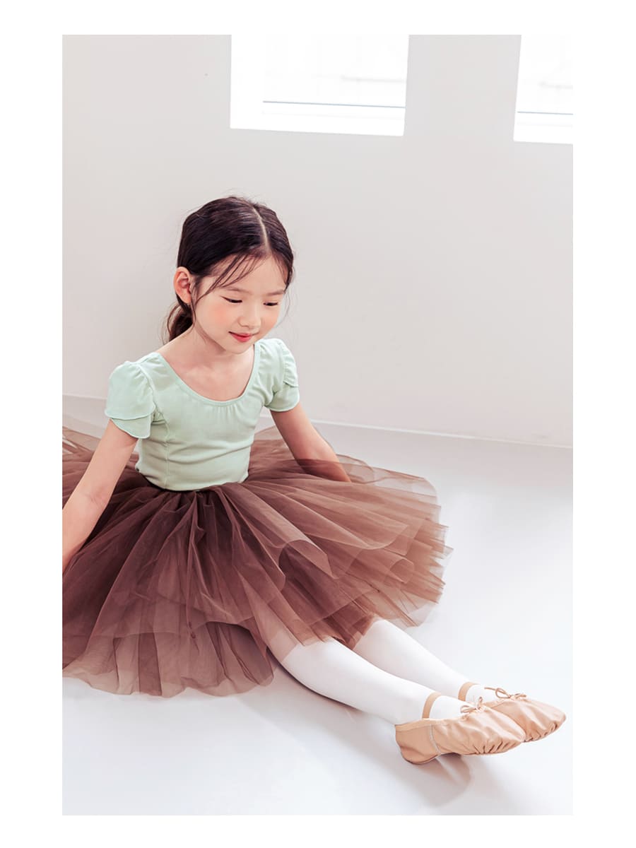 柔らかなレザー素材がつま先から美しく見せるキッズバレエシューズです。