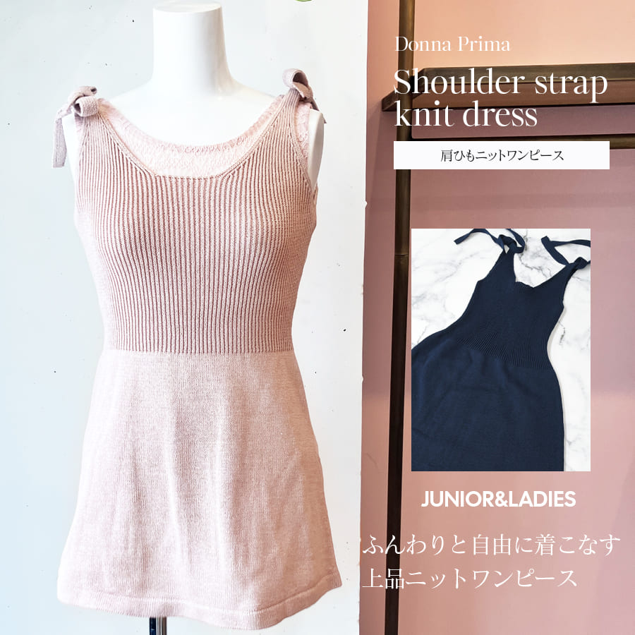 ふんわりと自由に着こなす!ドナプリマの肩ひも付き上品ニットワンピース。