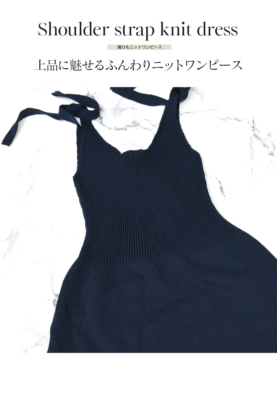 ふんわり柔らかな印象と機能性を兼ね備えた、肩ひも調節可能なニットワンピース。