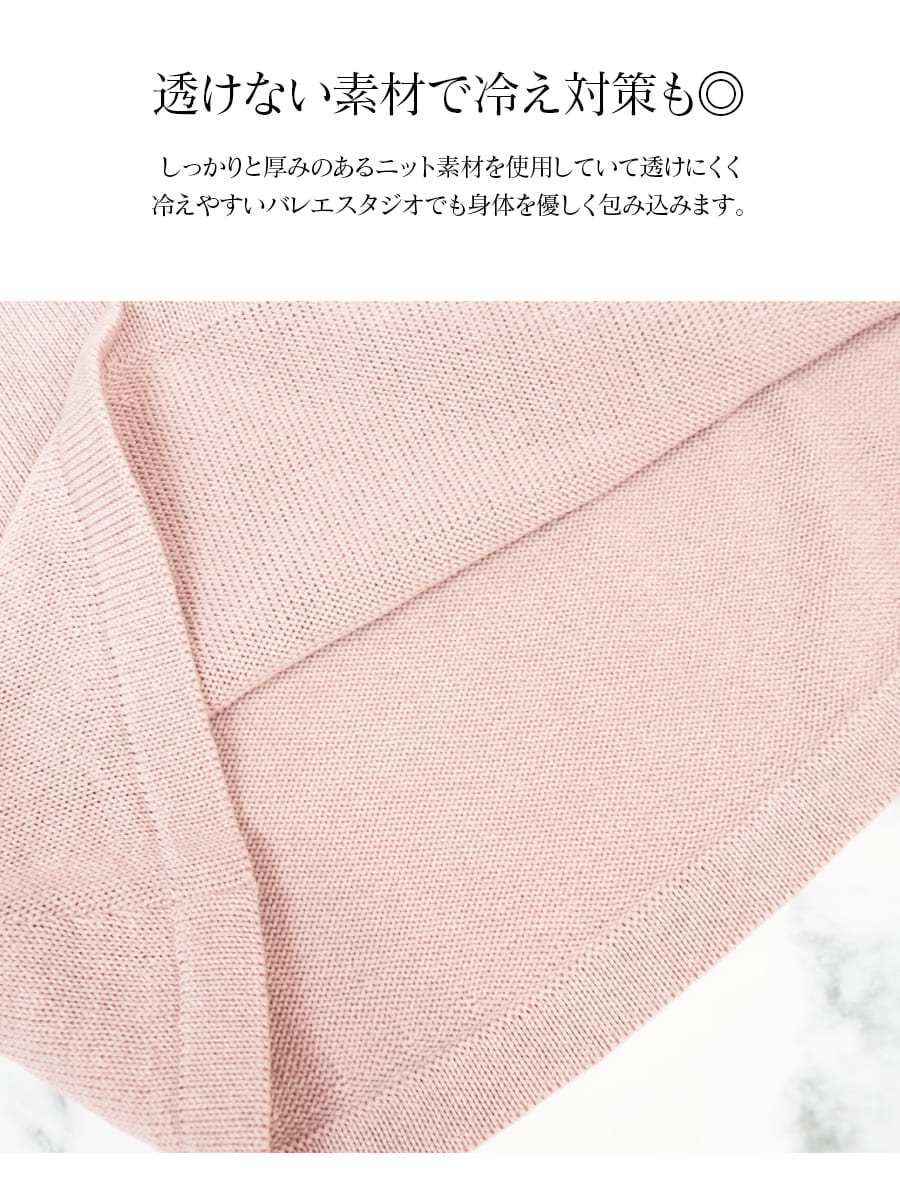 しっかりと厚みのある素材で透けにくく、冷えやすいバレエスタジオでも身体を優しく包み込み、冷え対策にも効果的です。