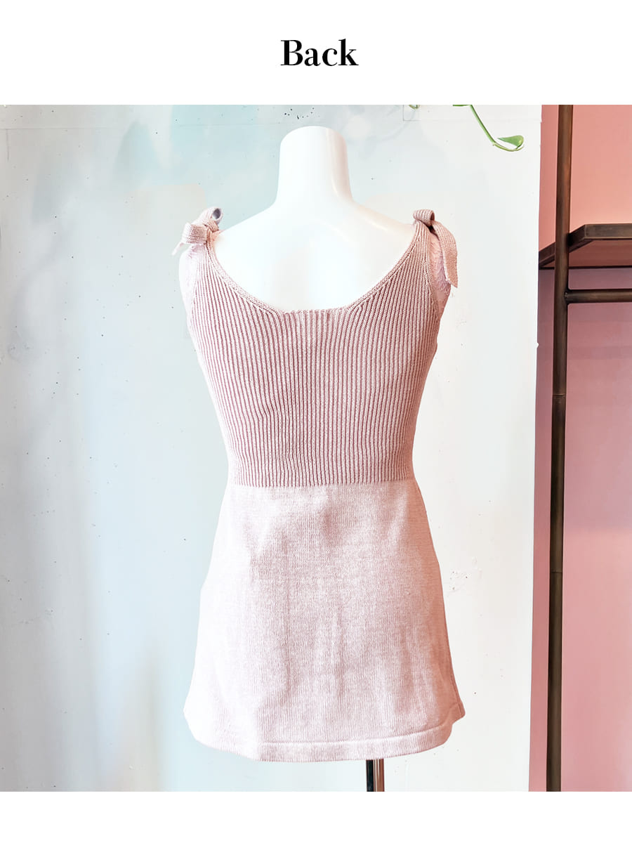 肩ひも部分はリボンで結ぶ仕様になっており、お好みの長さに自由に調節可能。