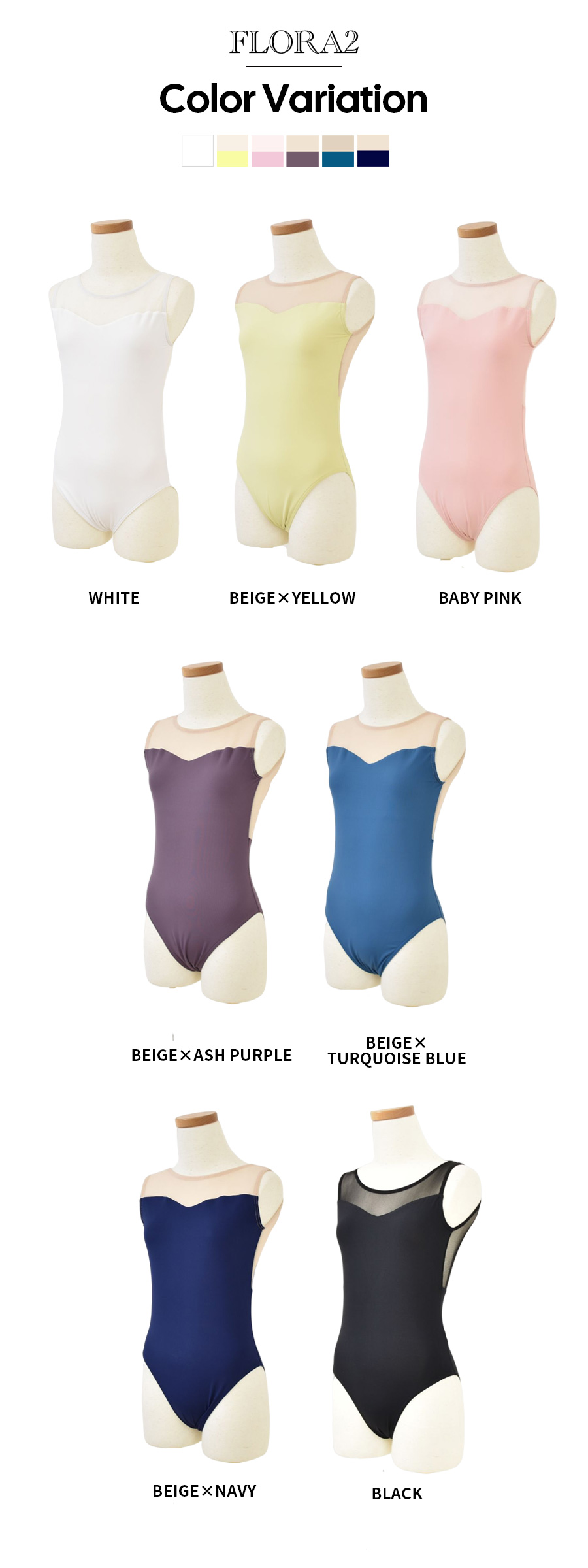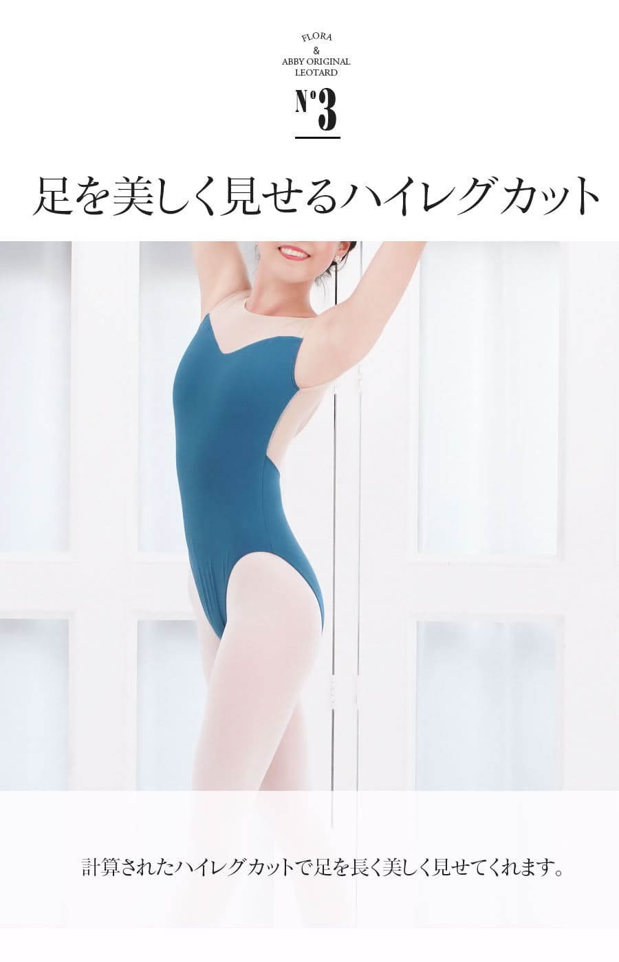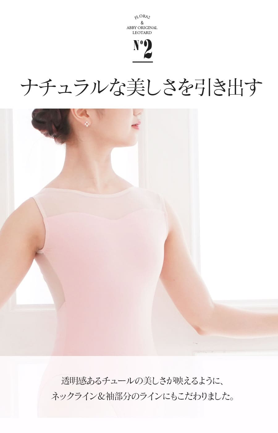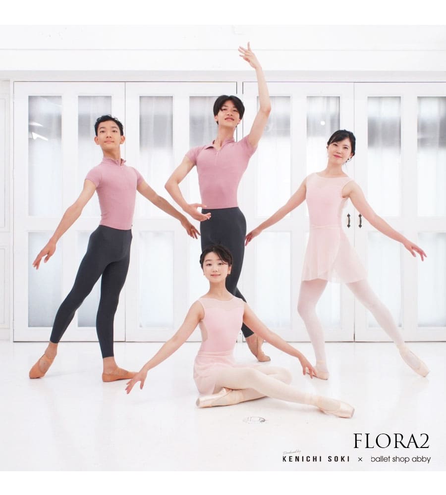 国内・海外問わずバレエコンクールにて審査員をつとめ、海外の有名バレエ校、全国各地のバレエスタジオの特別講師として国内外を飛び回っている「左右木健一先生」の監修による、オリジナルレオタード「FLORA」2。