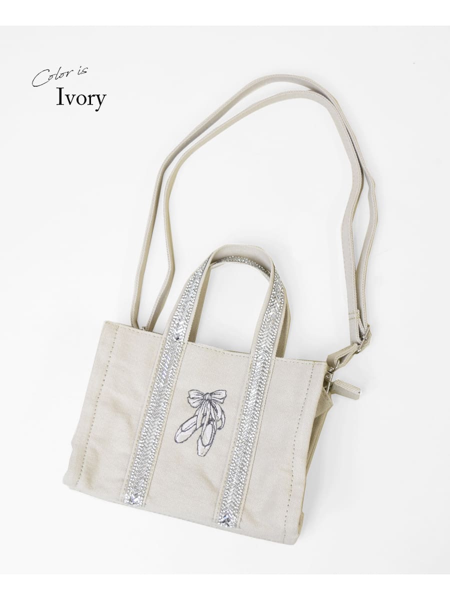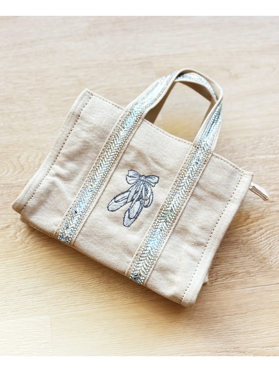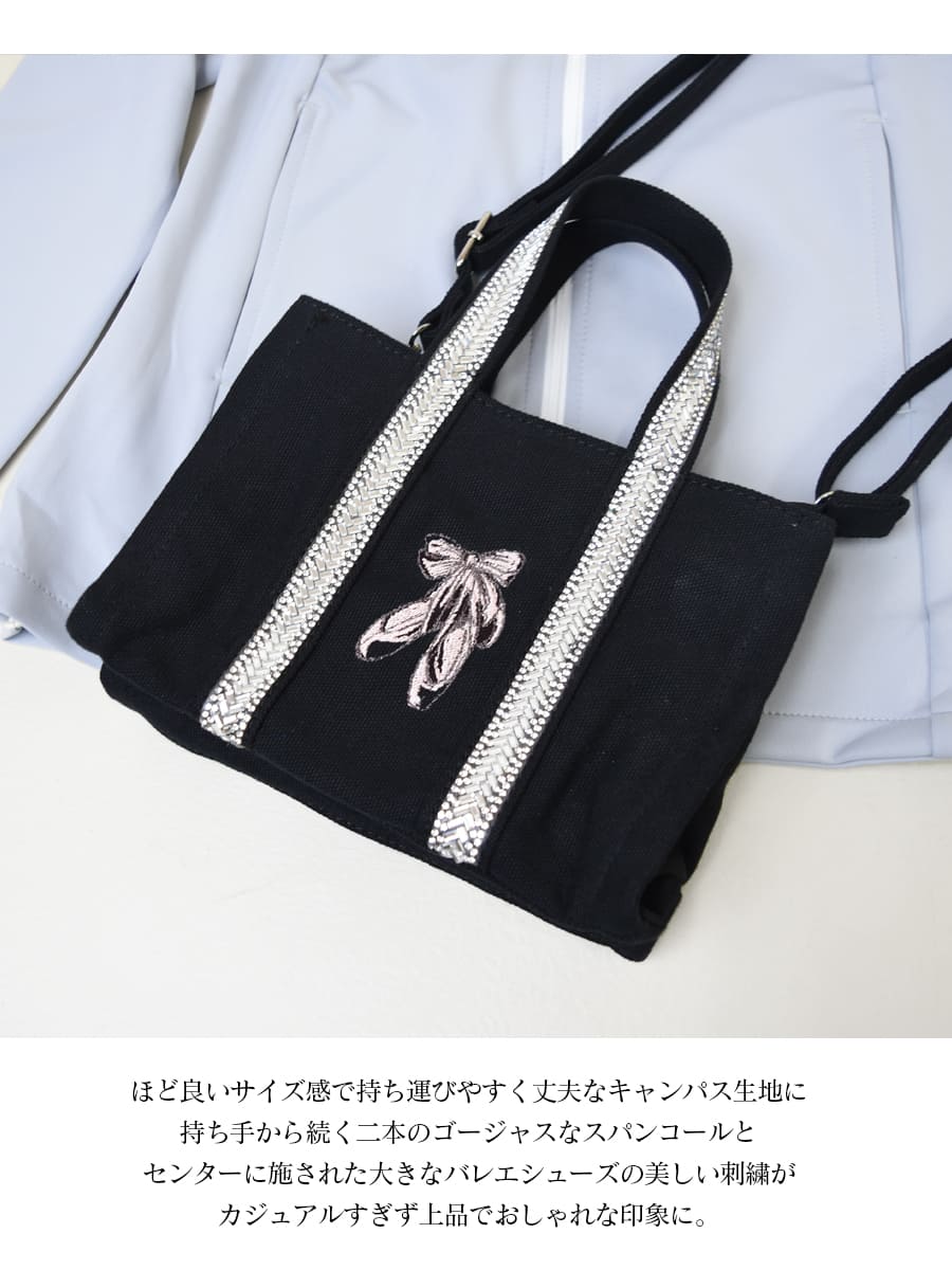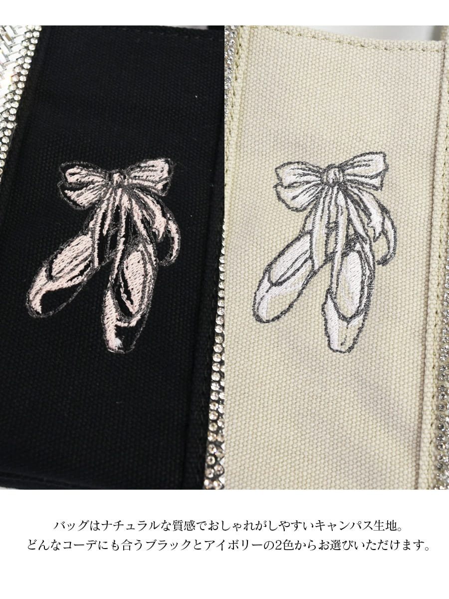 センターにほどこされたエレガントなバレエシューズの刺繍が大人可愛いアクセント。