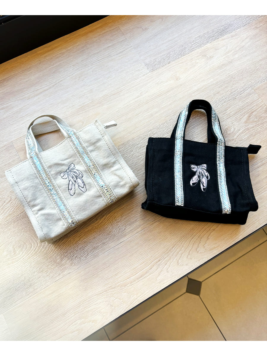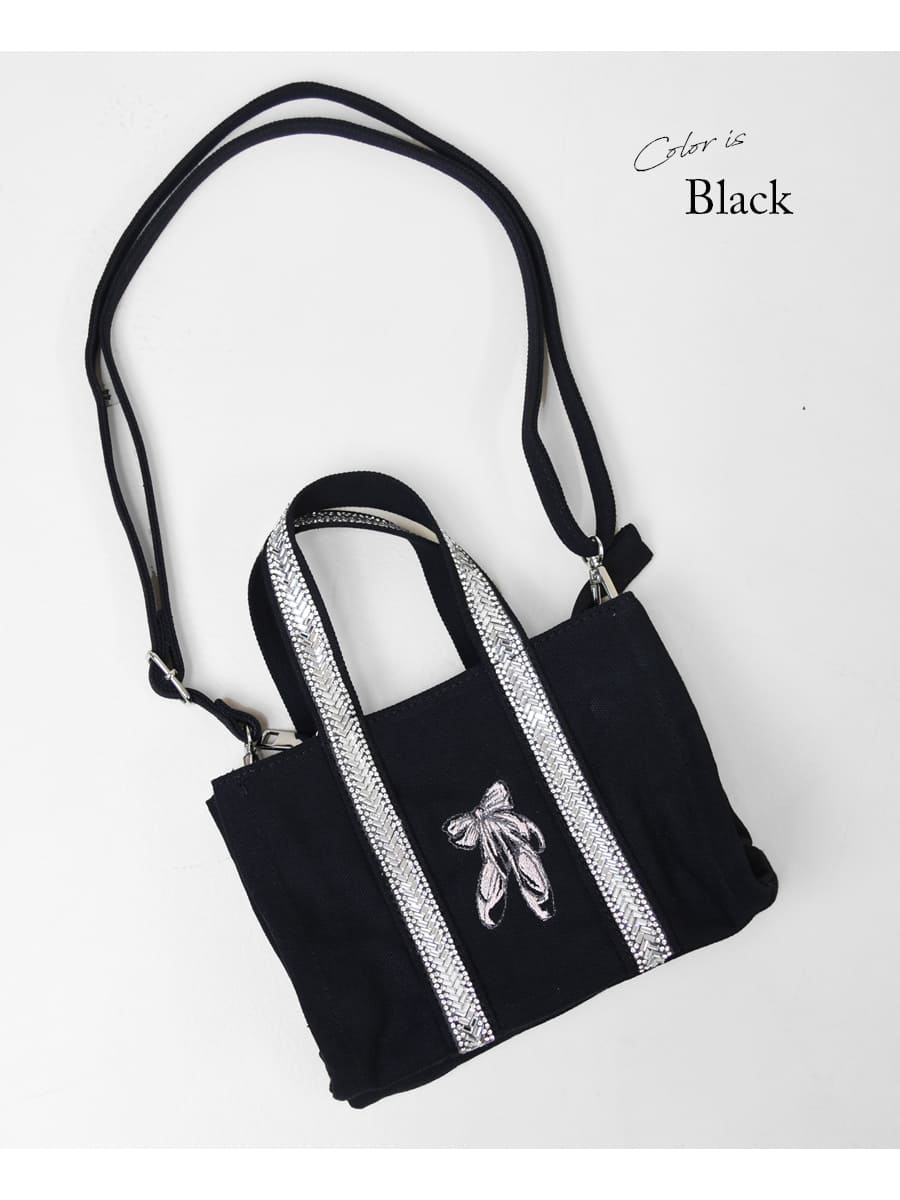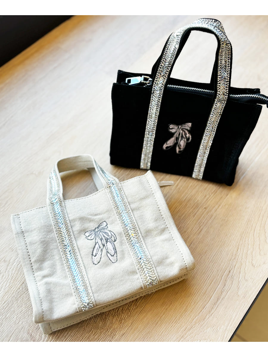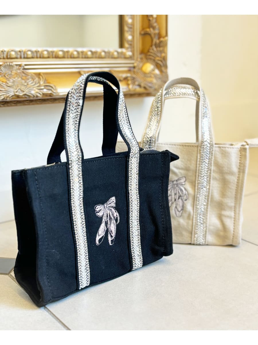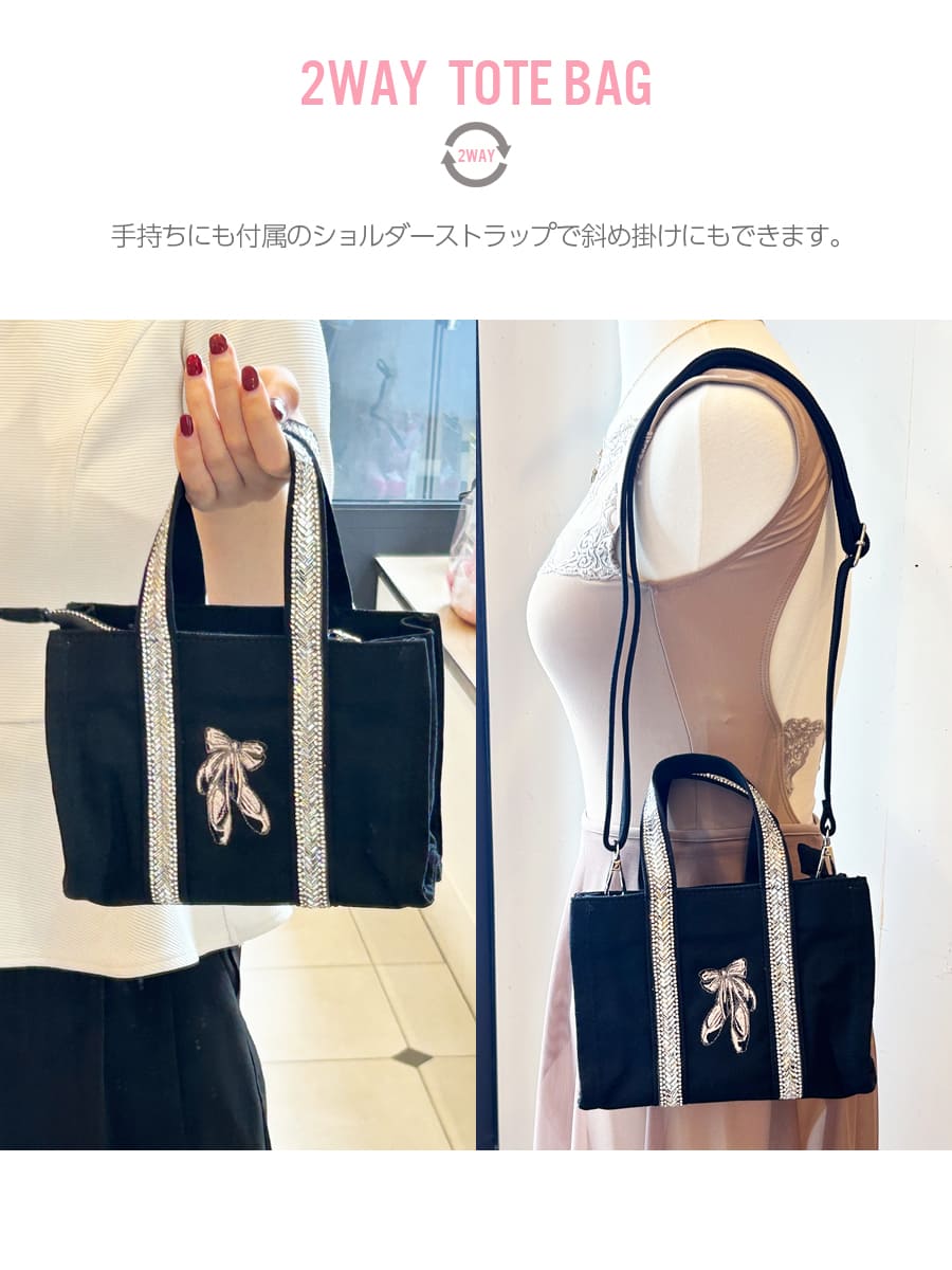 2WAYで使える!キラキラと輝くスパンコールラインが大人可愛いミニトートバッグ。