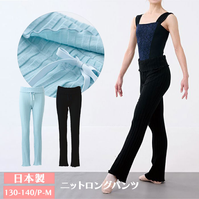 バレエ ロングパンツ ボトムス ニット ウォームアップ バレエ用品 長ズボン 大人バレエ こども 薄手 クロ 日本製 r84271