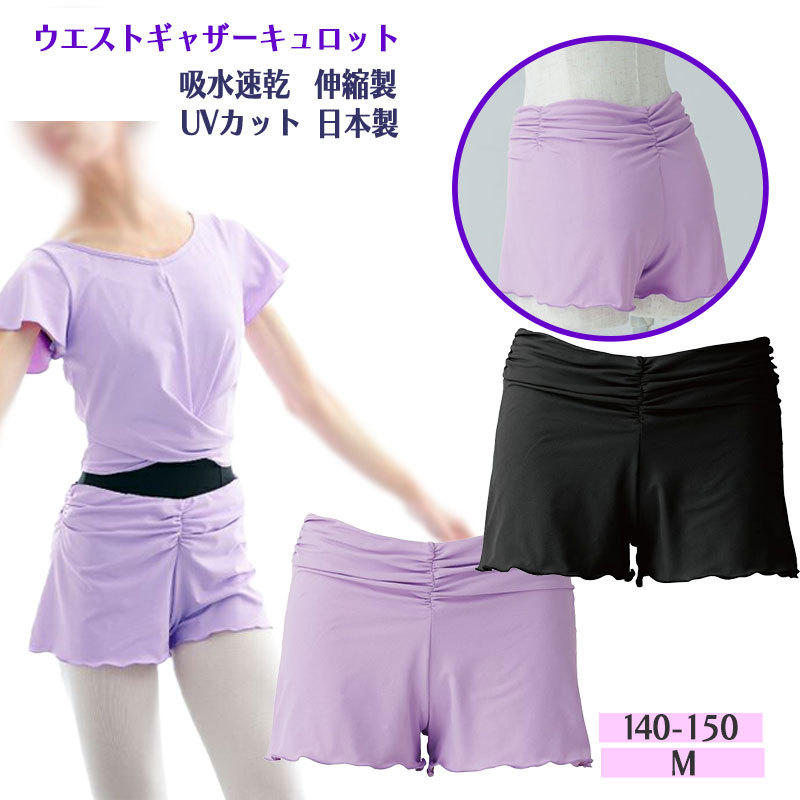 バレエ ボトムス キュロット パンツ ウエストギャザー 子供 大人 オーバーパンツ ブラック ラベンダー 日本製 r12251