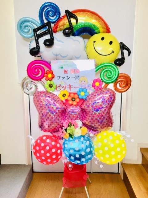 めずらしい生花とバルーンのスタンド花全体の高さ250cmくらい 札付き札のメッセージをコメント欄にご記入下さいお花は東京の大田市場で良いお花を選びます季節によって花が変る事はありますが色やイメージは変わらないようにしています