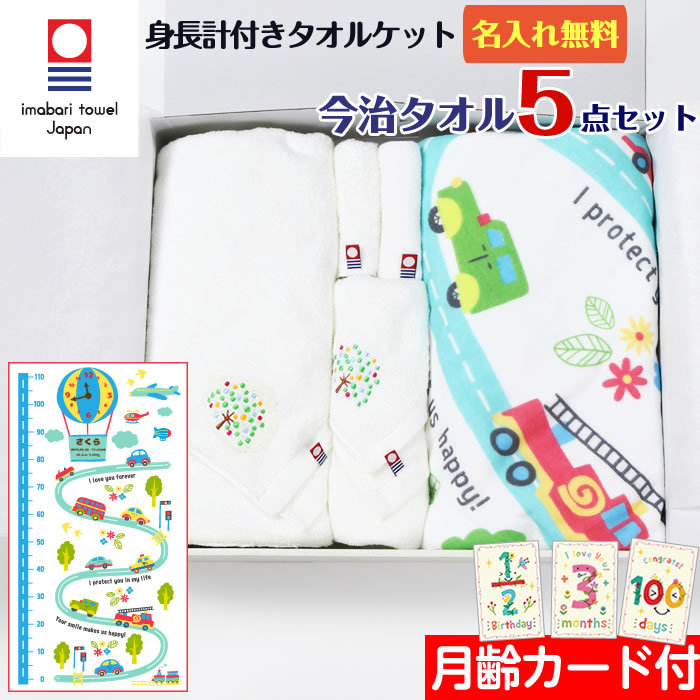 今治タオル 5点セット 乗り物ミックス 身長計付きガーゼケット ハカロッカ 日本製 名入れ ガーゼケット ガーゼタオル バスタオル ギフト