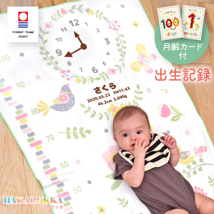 出産祝い 名入れタオル 女の子 男の子 おしゃれ ガーゼタオルケット ガーゼケット バスタオル 今治タオル 日本製 身長計 ハカロッカ 小鳥と蝶々