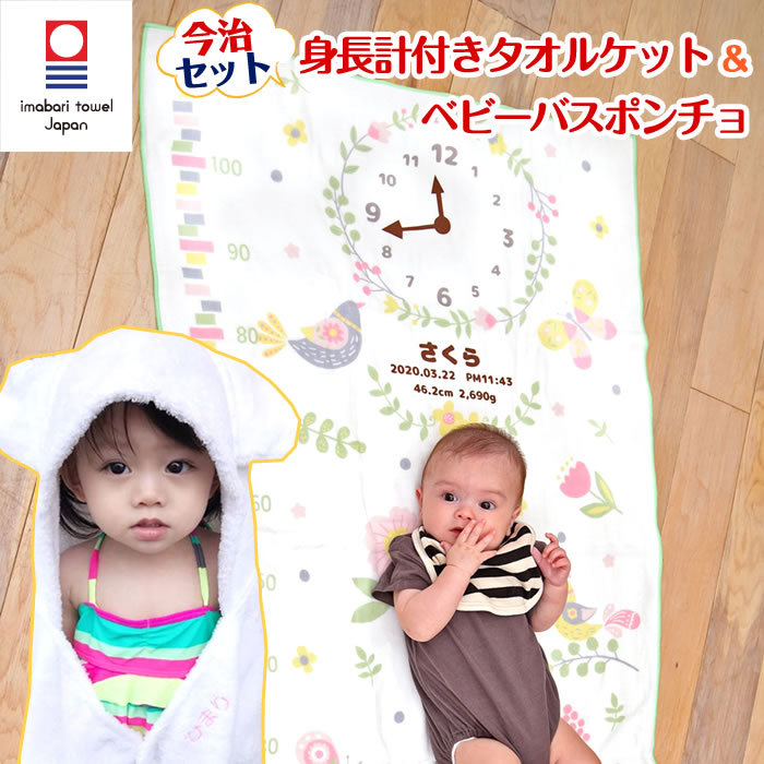 身長計ガーゼケット ベビーバスローブ セット ココポンチョ ハカロッカ 出産祝い 日本製 今治タオル バスタオル ギフト 小鳥と蝶々
