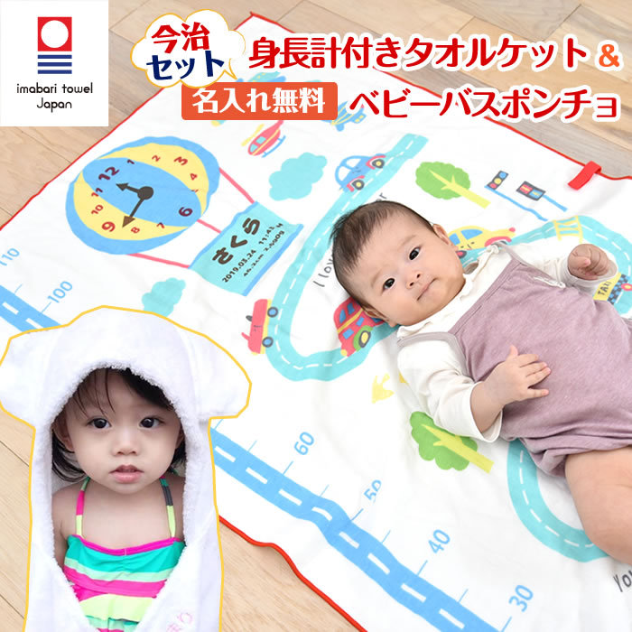 身長計ガーゼケット ベビーバスローブ セット ココポンチョ ハカロッカ 出産祝い 日本製 今治タオル バスタオル ギフト 乗り物ミックス