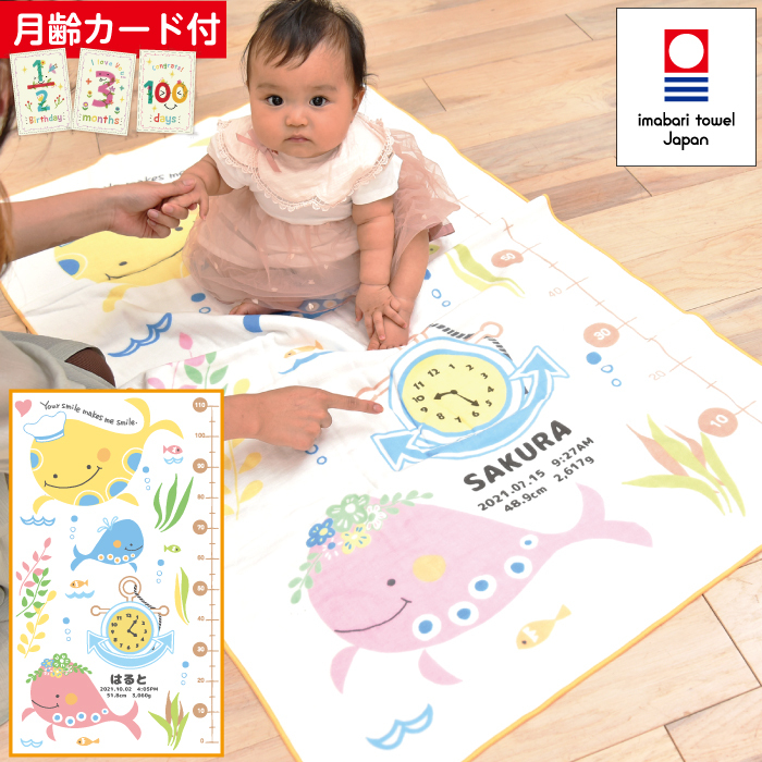 ハカロッカ くじらの家族 出産祝い 日本製 ガーゼタオルケット 今治タオル認定 名入れ無料 ガーゼタオル バスタオル 身長計付きバスタオル