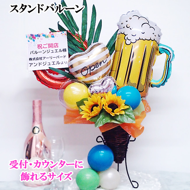 開店祝い バルーン スタンド ビール お祝い 居酒屋 飲食店 花以外 おしゃれ ビアガーデン 飲み屋 焼き鳥 オープン祝い オープン記念 周年 open beer balloon