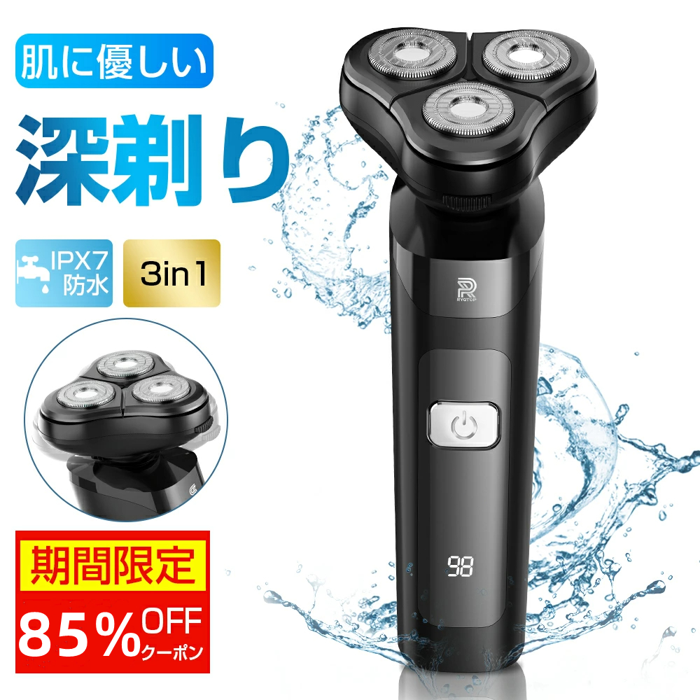 シェーバー メンズ 髭剃り 多機能シェーバー 爆買 3IN1 ひげそり 電動ひげそり 回転式 3枚刃 LCD電池残量表示 IPX7防水 type-c充電式 ロック機能 トリマー刃付