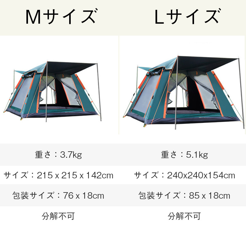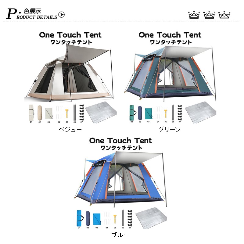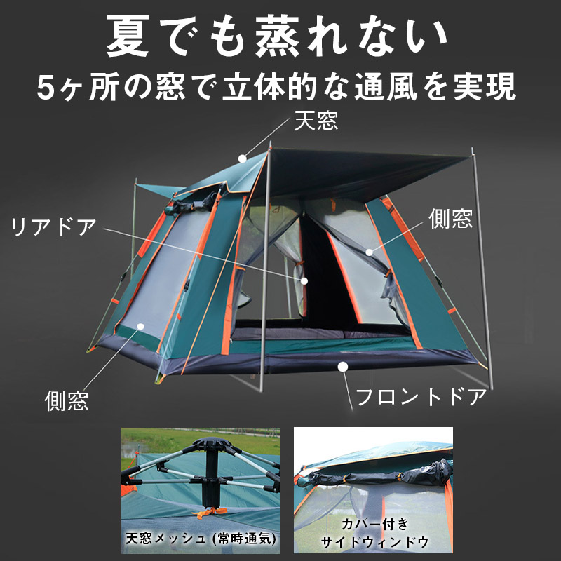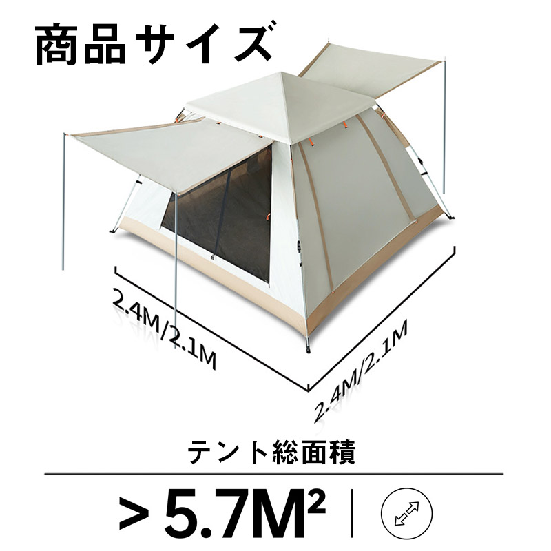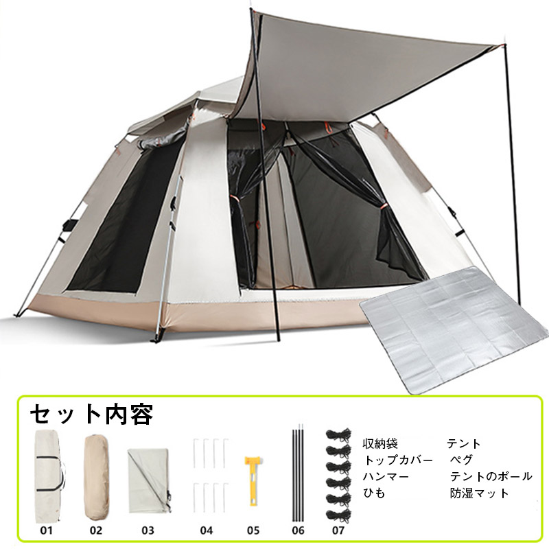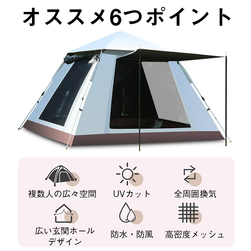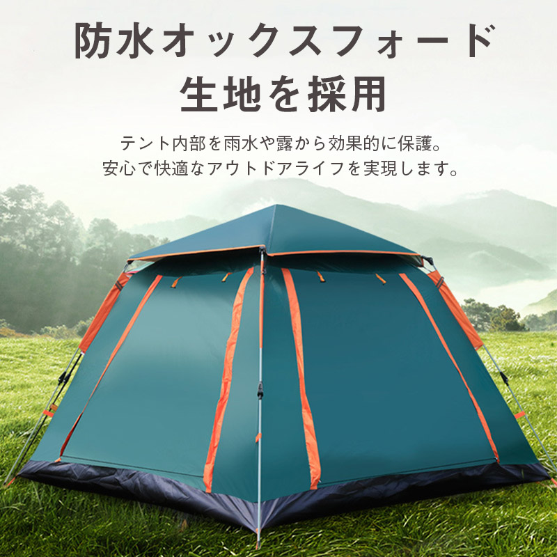 テント ワンタッチテント ドーム型テント 3人?4人用 ワンタッチ 防水 軽量 UVカット キャンプ 収納袋付 組立簡単 持ち運び