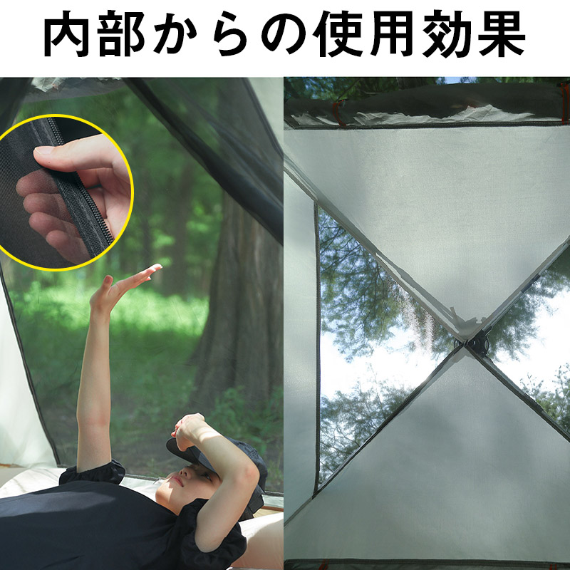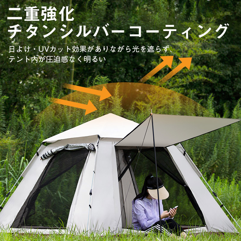 テントの内側にシルバーコーティングが施されており、真夏の強い紫外線をしっかりとカットしてくれます。