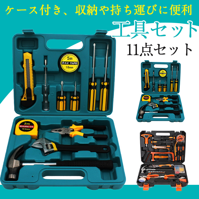 \心強い必需品/工具セット 家庭用 11点セット バイク 自転車 車整備 工具箱セット 道具セット 家庭修理 家具組み立て 住まいのメンテナンス用