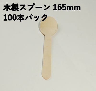 木製スプーン 165mm 100本パック カトラリー 使い捨て