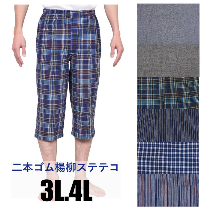 ステテコ.2本ゴム.楊柳素材(クレープ)中国製.先染め.3L.4L
