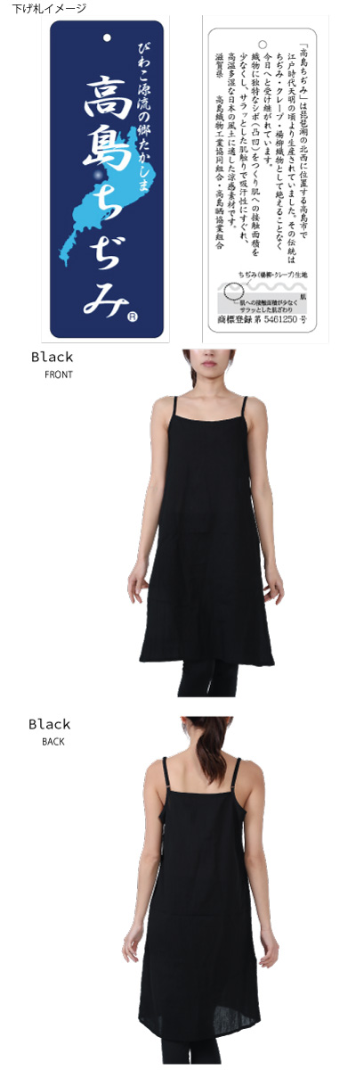 婦人肌着.スリップ.肩紐調整.レース無し.手もみシワ加工.ブラック.クレープ. 綿100%.日本製 .M.L.LL