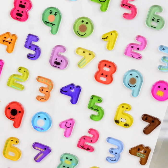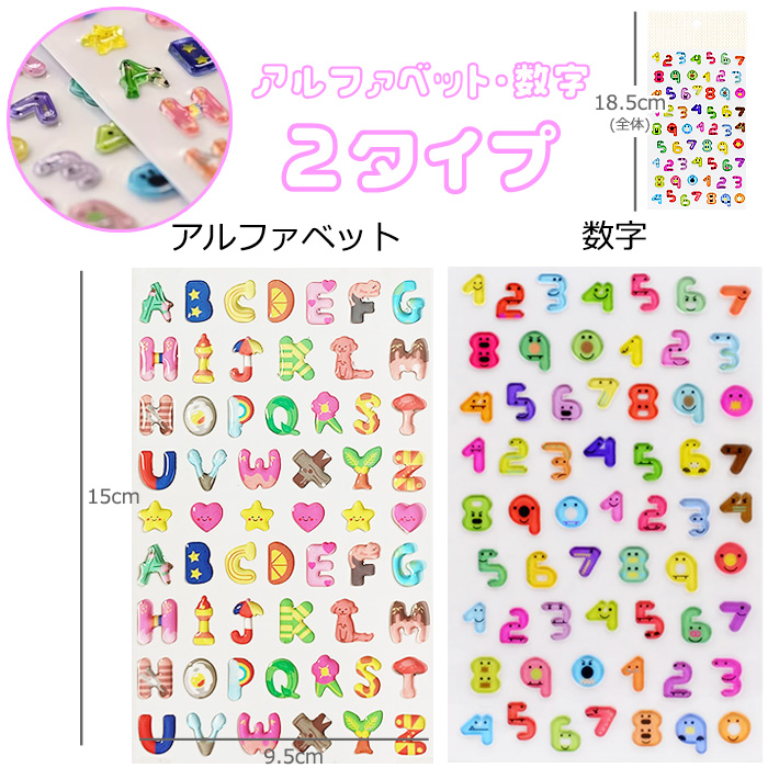 3D 立体 シール ぷくぷく ボンボンドロップ アルファベット 数字 おはじきシール ぷっくり つやつや ご褒美シール かわいい 爆買