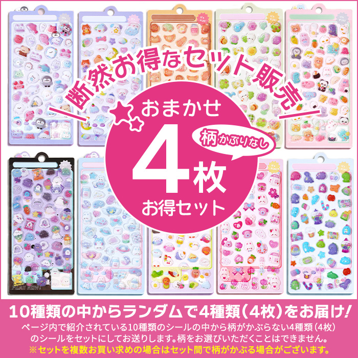 【お得4枚セット1479円】 ぷくぷくシール ぷっくり 立体 シール 10種類 3dシール かわいい 人気 キャラクター 爆買
