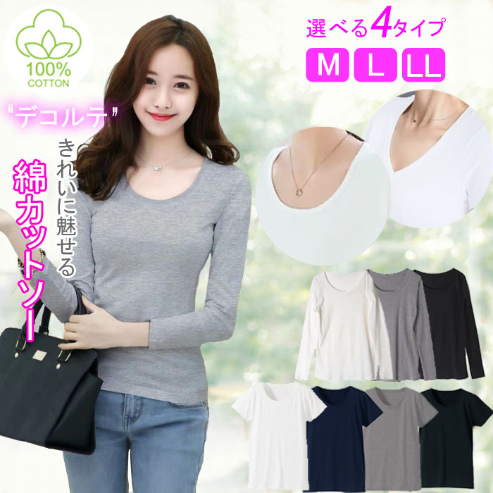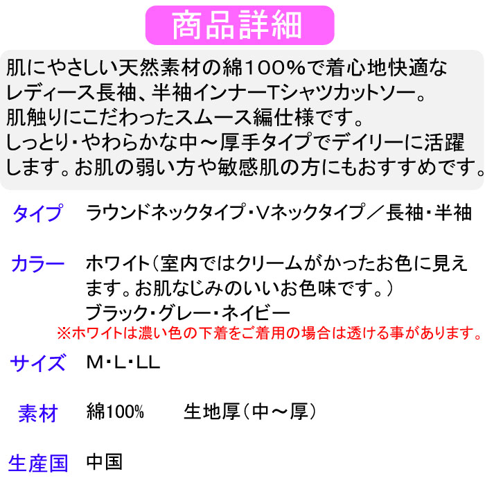 ●お肌にやさしい天然素材の綿100%で着心地快適なレディース長袖・半袖Tシャツカットソー。やわらか肌触りスムース編み、厚手タイプでデイリーに活躍します。