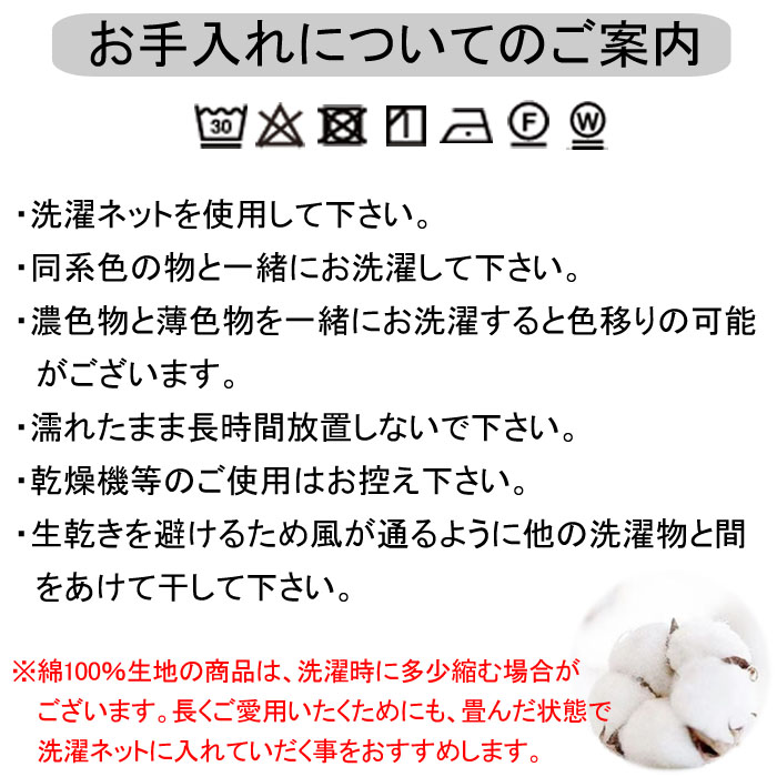 ●高温でのアイロンはご遠慮下さい。詳しくは、商品ページ内のお手入れに関する画像をご確認下さい。