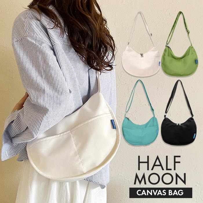 ショルダーバッグ レディース ハーフムーンバッグ 斜めがけバッグ ラウンドショルダー 大人 軽量 キャンバス 超軽量 おしゃれ おすすめ かわいい 可愛い