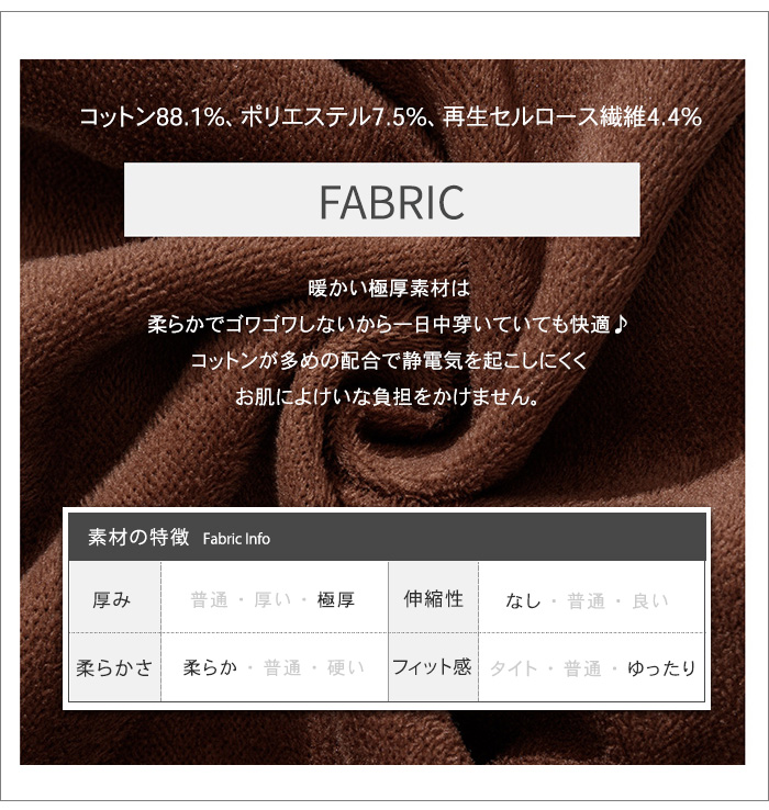 コットンが多めの静電気の起きにくい素材は大切なお肌によけいな負担をかけません♪