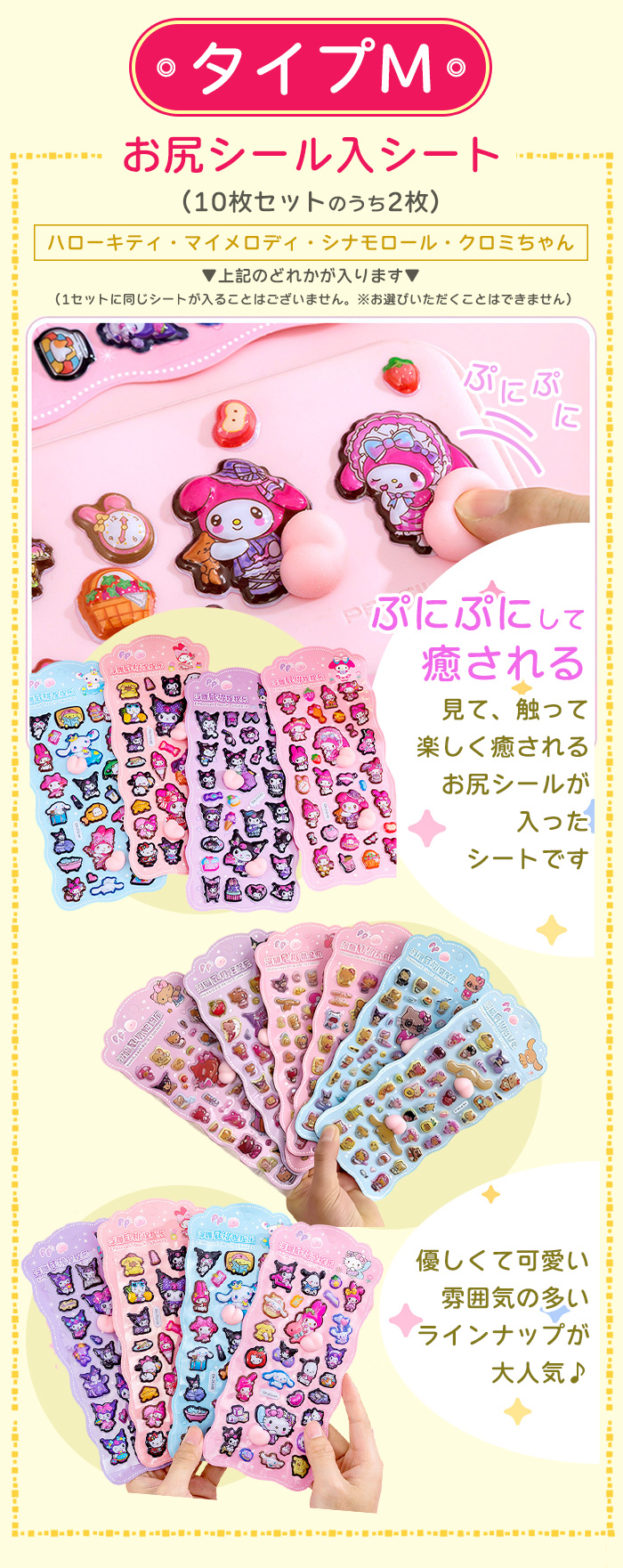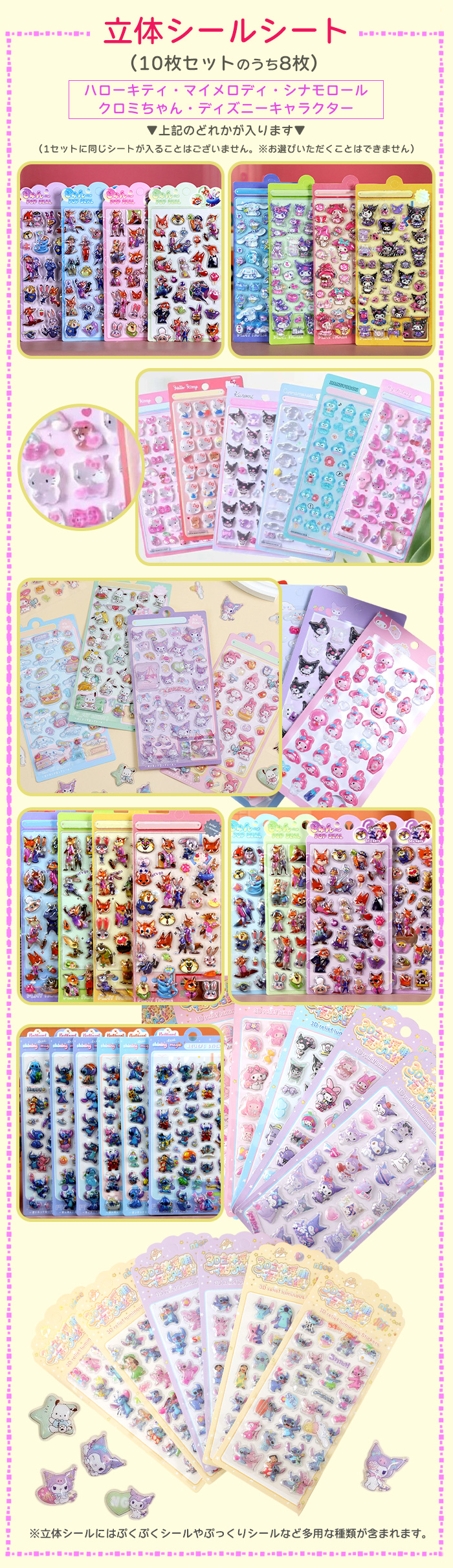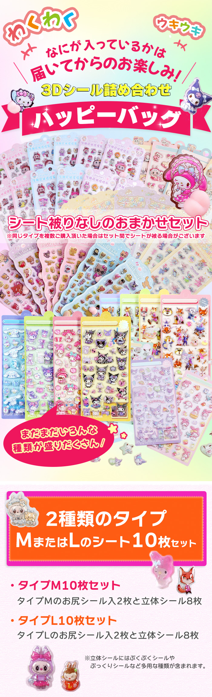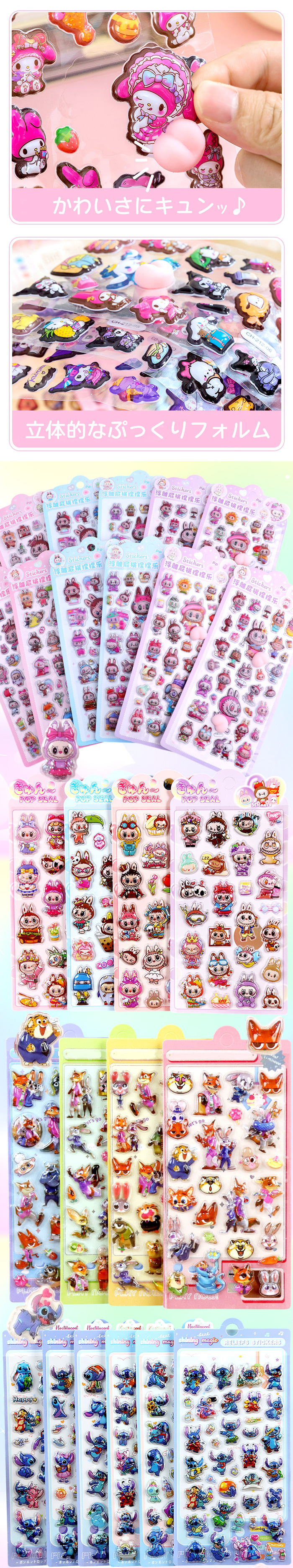 シール 福袋【1枚あたり470円】 3Dシール10枚セット 詰め合わせ ぷくぷく お尻 ラブブ キティ ぷにぷに ぷっくり シート被りなし 爆買