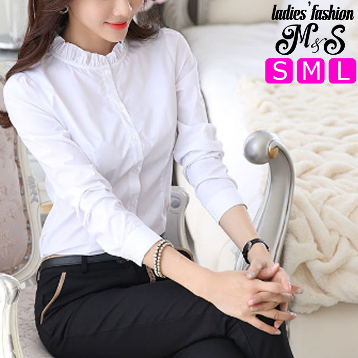 ●セレモニー、パーティー、フォーマル、通勤、オフィス、入学式に七五三…襟付きフリルブラウス オフホワイト 黒 ブルー。