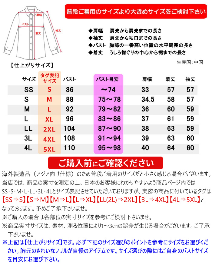 | こちらの商品はワールドサイズ・アジア仕様となっております サイズ表のバスト目安を参考に普段ご着用のサイズより必ず大きいサイズをご検討下さい。 | |