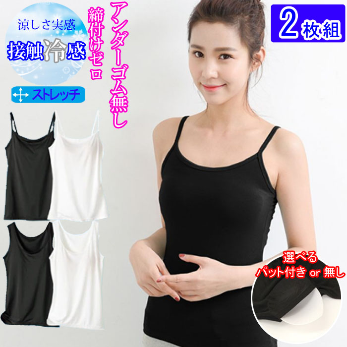 ブラトップ 2枚組 冷感 カップ付き インナー タンクトップ キャミソール 締め付けない パッド付き 下着 肌着 レディースインナー 汗対策 セット