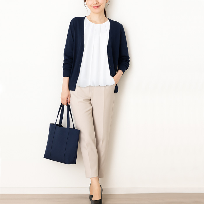 普段使いにはもちろん、通勤スーツのインナーやオフィスカジュアルなどのビジネスシーンにも活躍します。