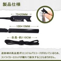 4.【高品質ポリエステルパラコード】 タイプIII規格、550ポンド パラコード、7芯 4mm「内芯は100%ナイロンで作られた、毎芯はさらに三つの縒り糸で束ねた丈夫な作りになっています。表地はポリエステルで作られた。」全長-約110cm、耐荷重250kg。ポリエステルパラコードは他の素材に比べて強度の高さ、雨など水による影響の少なさ、速乾性、色落ちしにくい点などが特徴となっており。