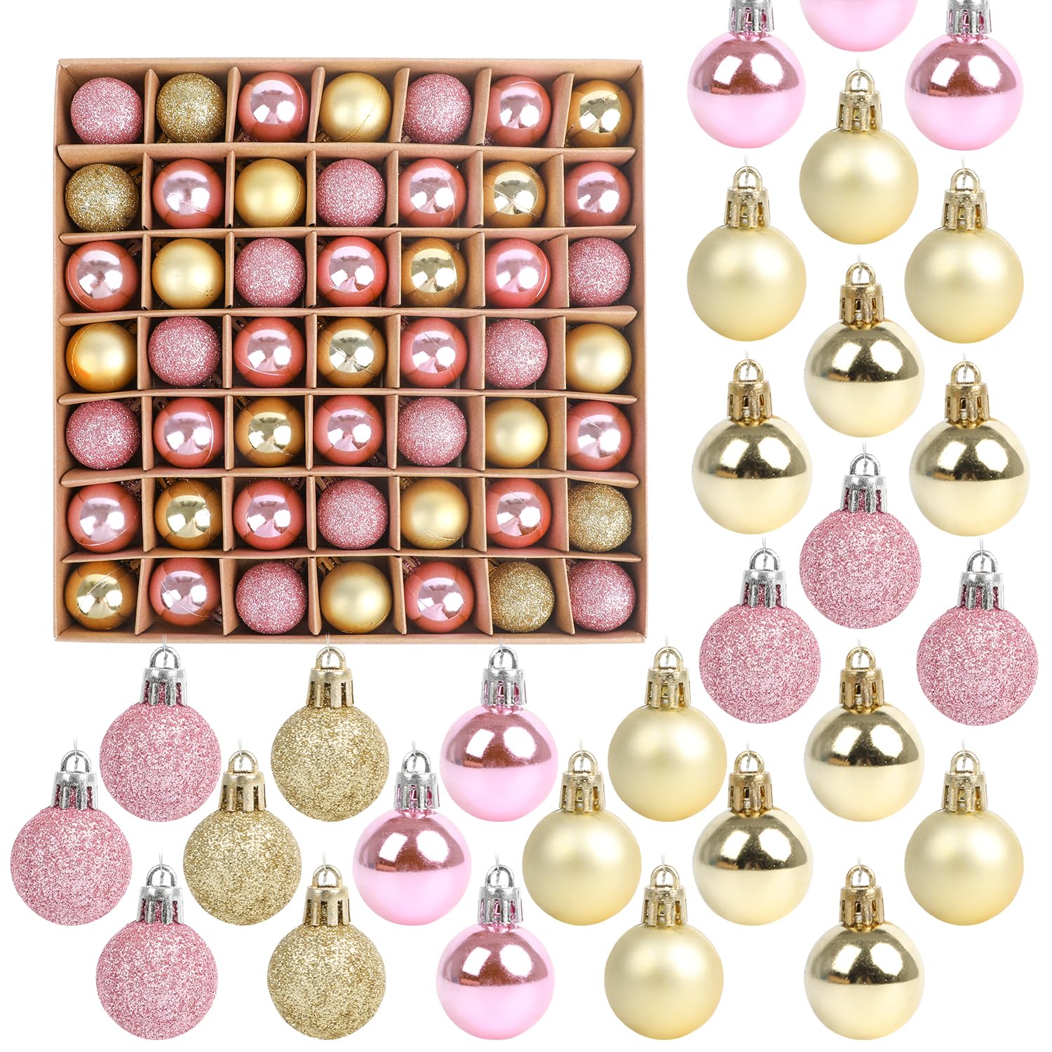 商品名:FINGOOO クリスマス ボール オーナメント ツリー 飾り 49PCS・3CM・5種類 キラキラ 北欧風 おしゃれ 豪華 プレゼント (3CM, Aピンク&金)