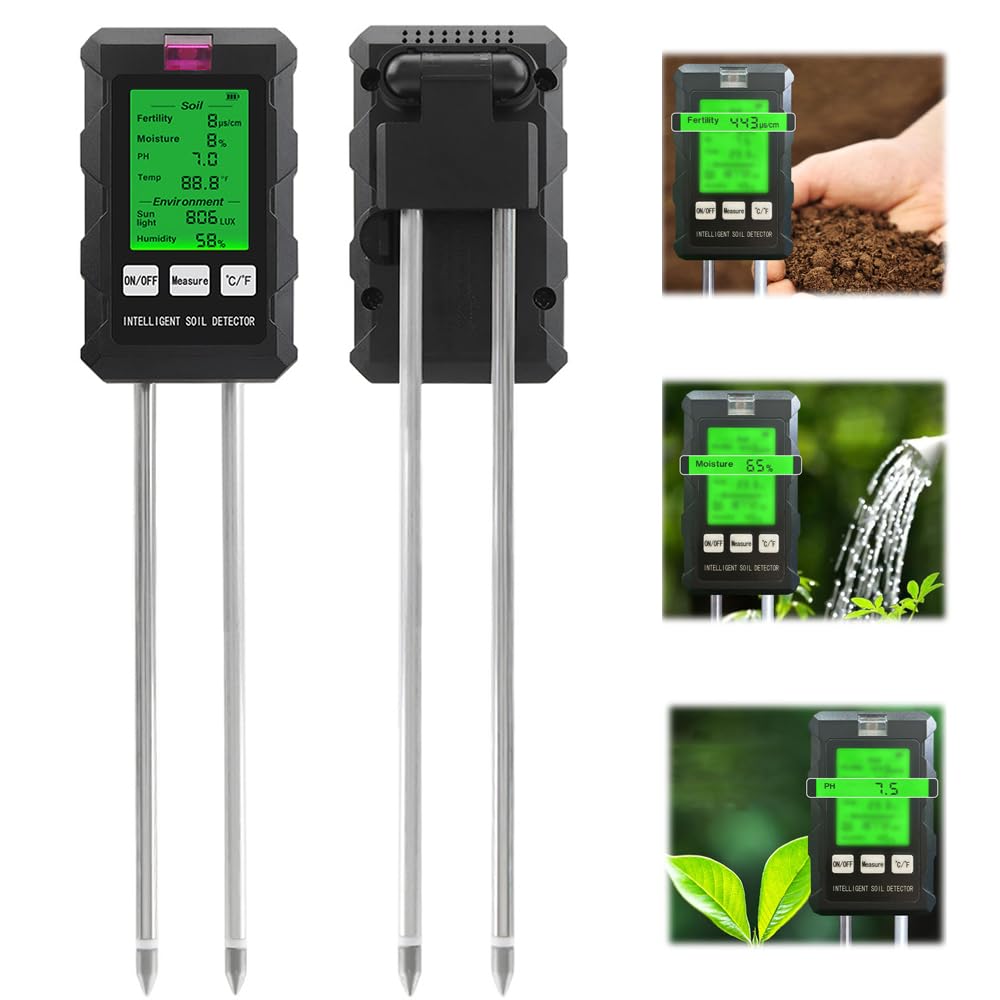 YAARUJEE 土壌 ph測定器 6in1 土壌テスター 温度/肥沃度/土壌湿度/照度/pH/環境湿度 土壌酸度計 デュアル検出プローブ デジタル植