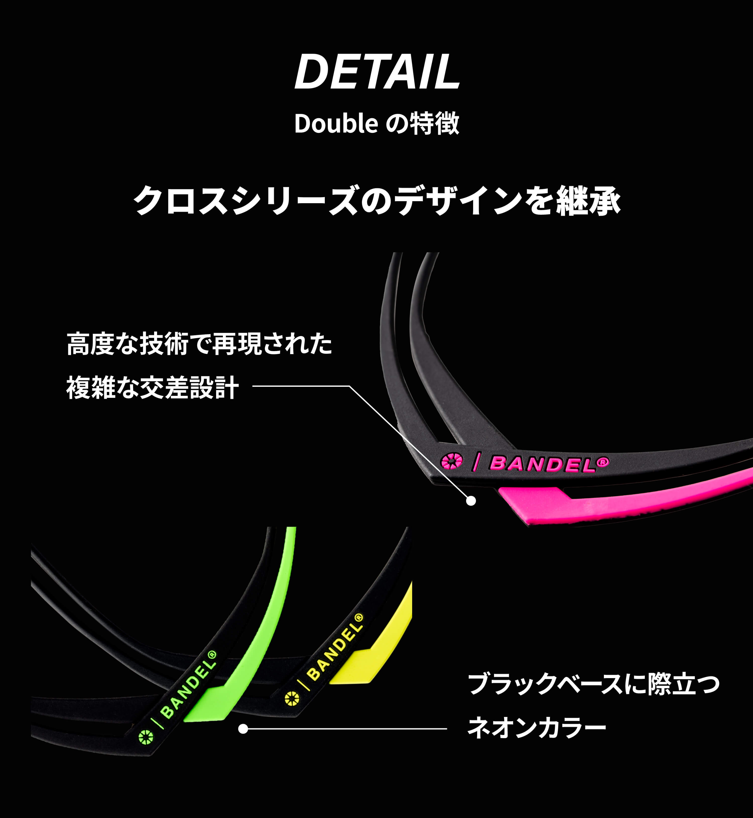 BANDELの過去と現在が重なり合うクロスオーバーデザインの「Double」は、独特のデザインと高い効果で、あなたのスタイルやパフォーマンスをさらに引き上げます。
