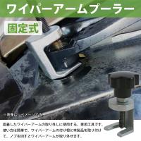 | ワイパーアームを簡単に取り外す事ができる専用工具! 固着してなかなか外せない場合などに最適です。 横から滑り込ませて使うタイプで、操作は簡単! プーラーワイパーアームの付け根に取り付け、 ノブを回すとワイパーアームが取り外せます。 国産車/輸入車の小型自動車から軽トラックまでに対応可能ですが、 対象サイズをご確認の上、お買い求めください。 |