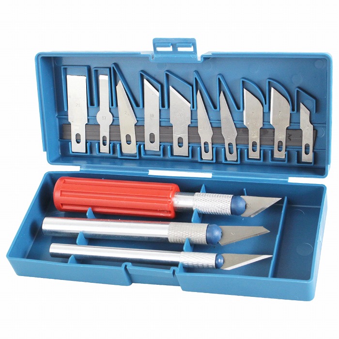 | 13枚の様々な形状の刃先が付属しており、 用途に合わせて使い分けが可能なクラフトナイフセットです。 アートワークや切り絵などの繊細な切り抜き作業に最適です。 使用シーンに応じて、先端を付け替えする事が可能です。 付属の収納ケースには磁石が付いており、紛失することなく安全に保管できます。 |
