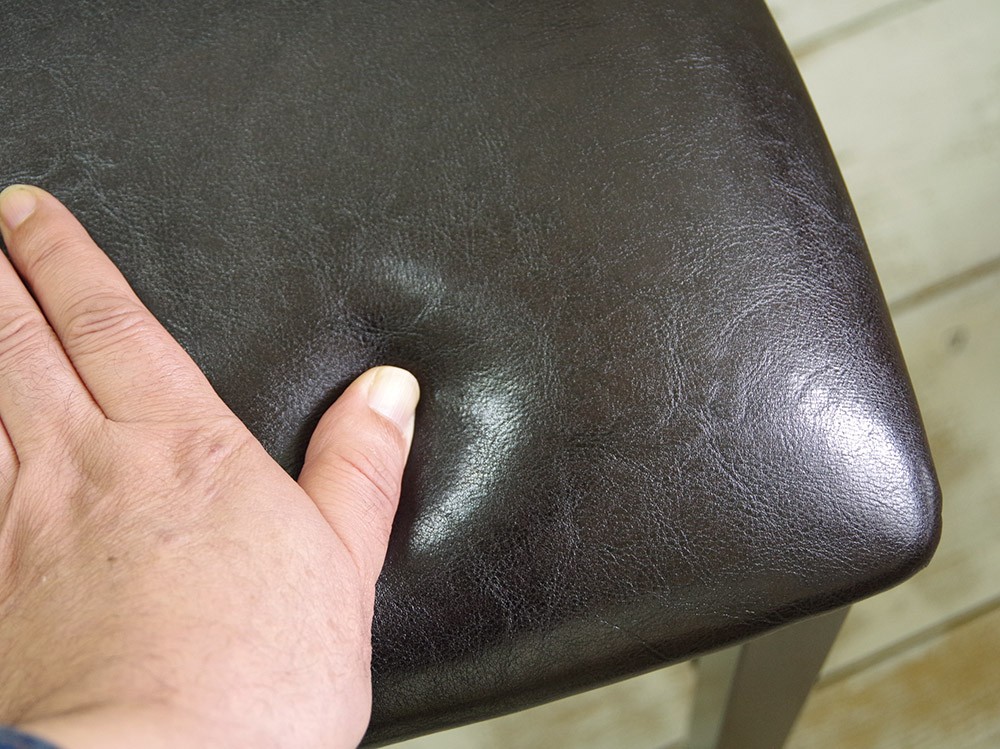 座面クッションタイプでお尻に対する負担がすくなく、座り心地がさらに良くなりました♪ 写真のようなソフトレザーを使用しています。 また、落ち着いたブラウン色の座面でオシャレな空間を演出します。 |