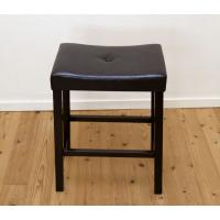 奥行はコンパクトサイズでも、横幅はダイニングチェアサイズでゆったり!クッション付だからお尻が痛くなりにくく、カウンターでゆっくり食事やおしゃべりを楽しみたい方のご家庭用にはもちろん、居酒屋やカフェ・バーなど店舗業務用スタンド椅子としても好評です! 濃いこげ茶(ダークブラウン)色のソフトレザー張りなので、柔らかくお尻のカーブにフィットする座り心地の良いスツール♪ |