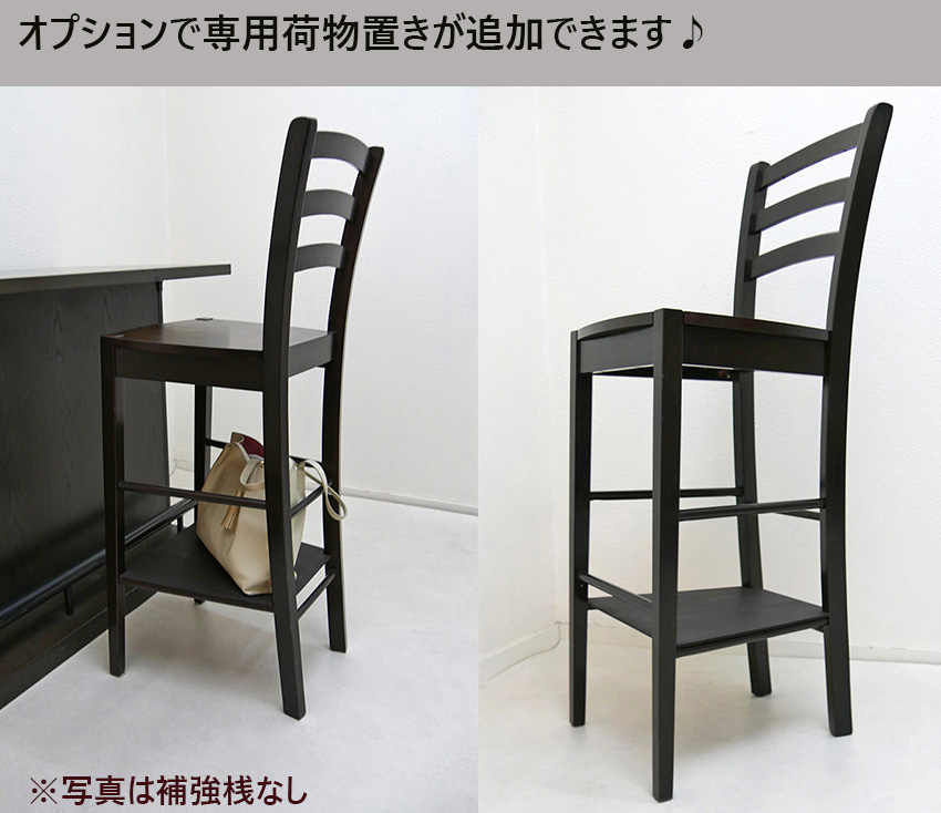 | 今までになかった座面高さ80cmの補強桟付きタイプが新登場♪ ちょっと高いハイカウンター高さ110cm〜105cmにあわせてご使用いただけます!カフェやバーカウンターチェアとしてだけでなく、飲食店舗店頭のディスプレイ台・メニュー黒板置きにするにも良い高さ! ちょっとだけ高い…という時にも、お客様のご要望の高さに変更して製作することが可能です。(1脚+2000円※代引き・変更・キャンセル不可) 希望座面高がない場合は備考でお知らせ下さい。 ![]() | |