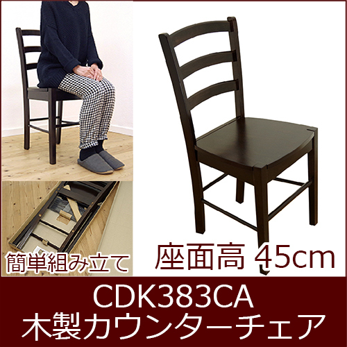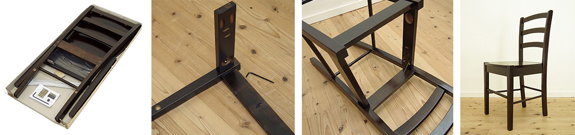 組立式の木製チェアですが、組立用ビスなどの金属部分は外側からは見えないすっきりとしたシンプルなデザインになっています。 その為に安っぽい印象がなく、カフェやレストラン・食堂や居酒屋など飲食店など店舗用にも好評♪ |