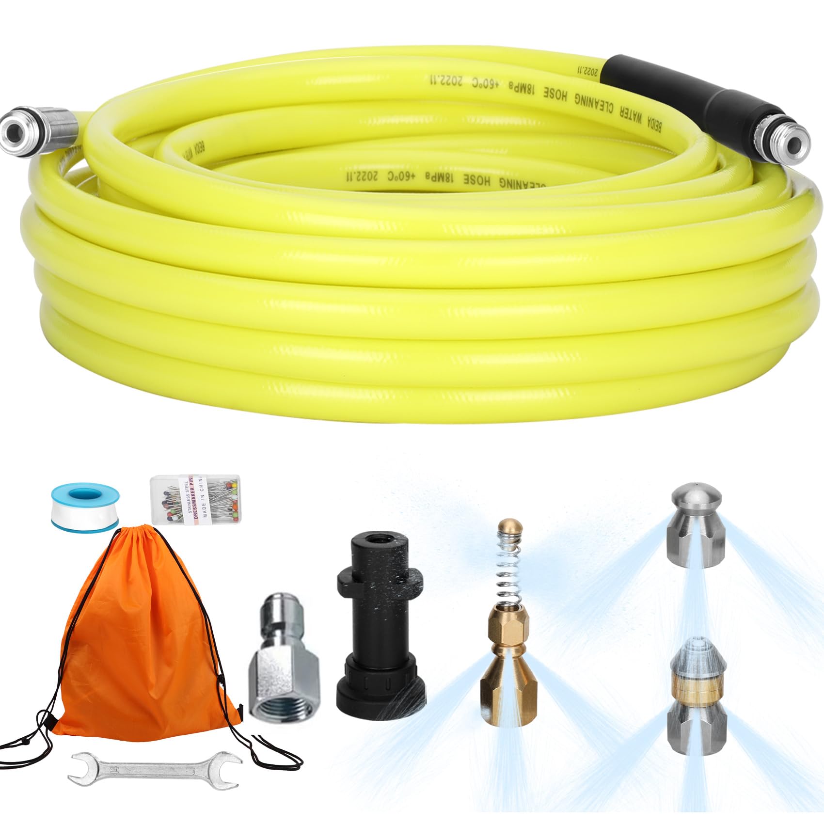 【改善(2)パイプをおしゃれにしてとともに高品質材料を採用ケルヒャー配管洗浄ホース】今度のケルヒャーパイプクリーニングホースは黄色いと青いパイプがあります。洗浄作業にもっと目立つになります。またケルヒャー配管洗浄ホースはPVC素材、表面は高品質ゴム、真ん中は鋼線と繊維でできた防爆層、内層はPU素材です。 圧力を落ない、ねじれにくい硬さを持ってる同時に自由に伸びる柔らかさもあります。最大18 MPaに耐える厚いポリエチレンを採用して、耐久性も強いです。また配管が詰まった時、業者を呼ばなくても自分でやれます!もっと経済的です!