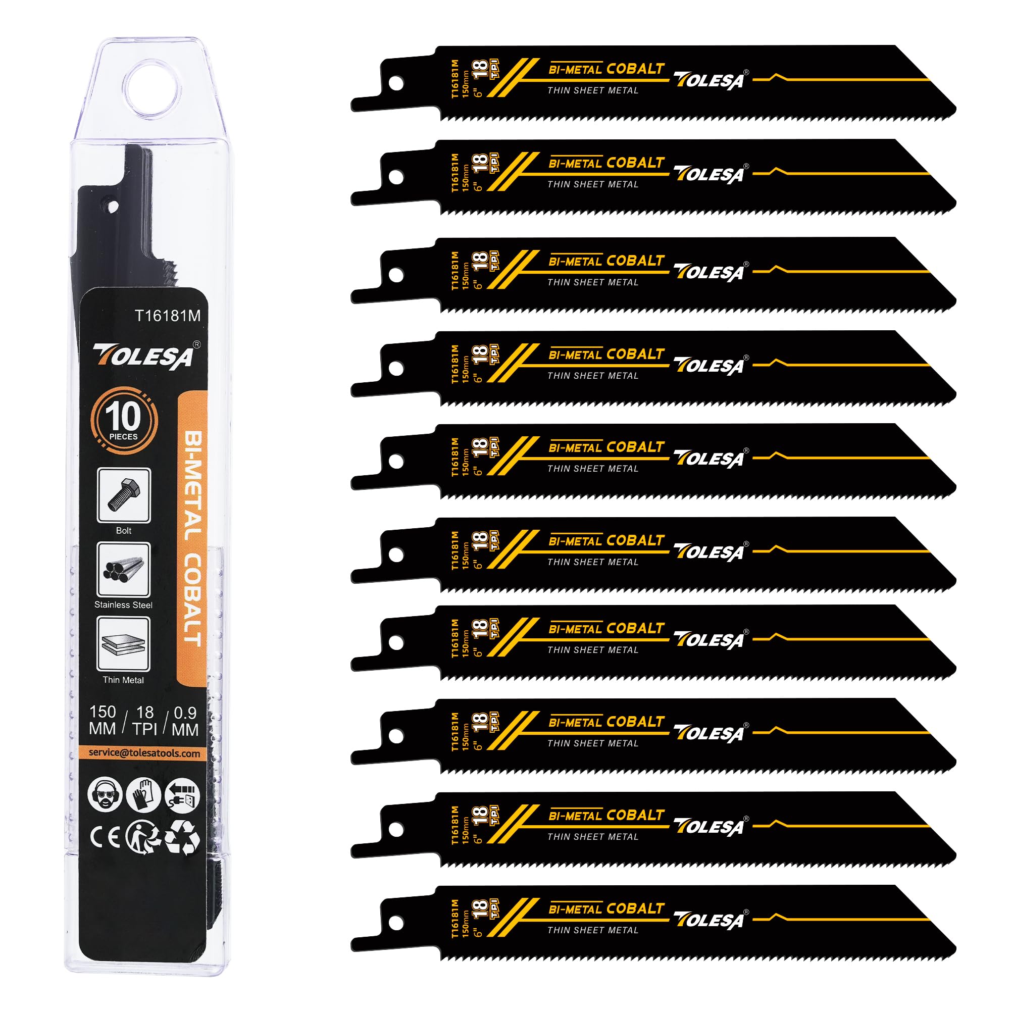 商品名:TOLESA レシプロソー 替刃 金属用 18山 225mm M42 バイメタル 8%コバルト セーバーソー 替刃 金属 鉄・銅・アルミなど 中厚金属 10本入