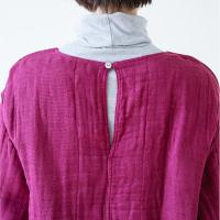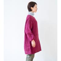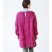 またふくらみのあるシルエットや蚊帳の独特の生地感がかわいく、毎日の家事の気分を上げるオシャレな一着。割烹着によくある開きがないのでチュニックのような感覚で着て、ちょっとお買い物へ出かけることもできるデザインです。